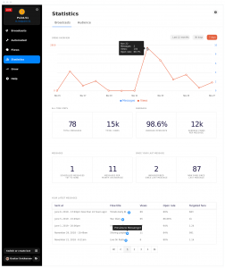 POP provides statistics about your audience and broadcasts. You’ll be amazed to see your fanbase quickly grow while keeping amazing open rates!